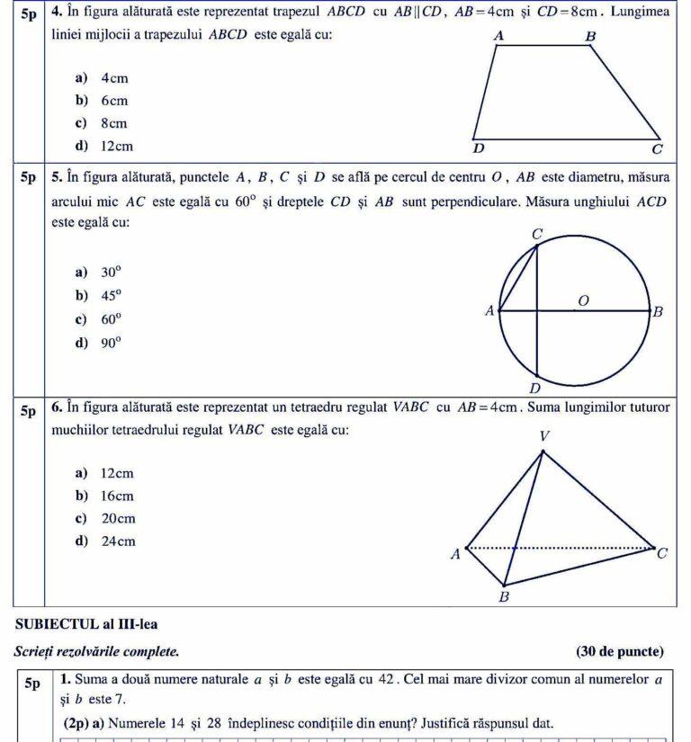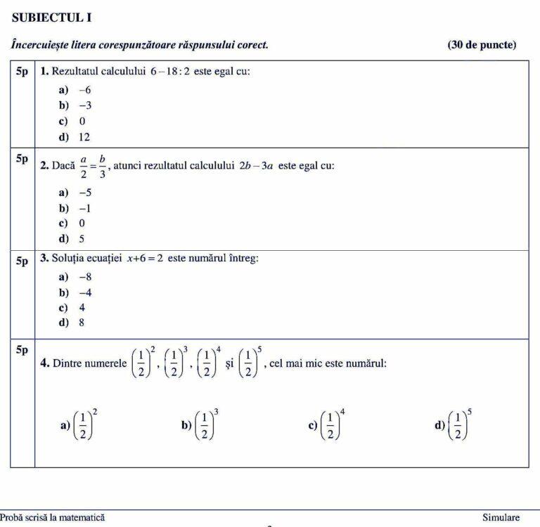 - 5 aprilie 2022 – Matematică – probă scrisă