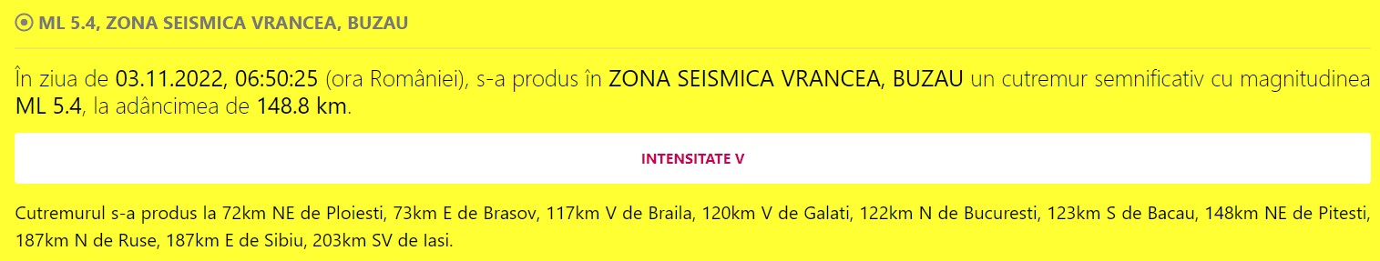 Cel mai mare seism din acest an s-a produs în data de 16 ianuarie 2022 şi a avut magnitudinea de 4,4, în timp ce anul trecut a fost înregistrat pe data de 26 mai un cutremur cu o magnitudine de 4,7 pe Richter.