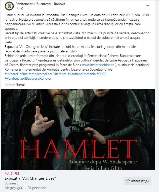 Acesta a pregătit, timp de patru luni, alături de conducerea penitenciarului Rahova 33, programul de pe scena Teatrului Nottara. Deținuții, care au intrat în pielea personajelor din opera dramatică a lui William Shakespeare, Hamlet, au fost copleșiți de emoții.