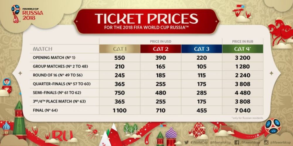 Pentru rusi preturile sunt mai mici, in jur de 18 euro. Cel mai scump bilet pentru un meci la Cupa Mondiala costa 1000 de euro!