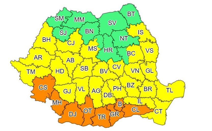 Astfel, în intervalul 29 iulie - 1 august, va fi Cod portocaliu de căldură şi disconfort termic deosebit de accentuat în judeţele Mehedinţi, Dolj, Olt, Teleorman, Giurgiu, Călăraşi, Ilfov, Municipiul Bucureşti şi în sudul judeţului Caraş-Severin.