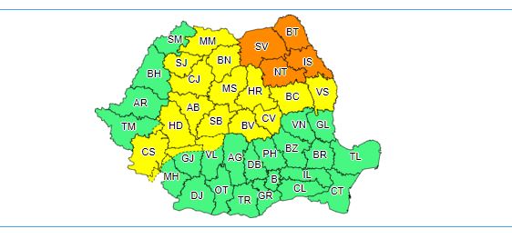În intervalul menționat, în Transilvania, cea mai mare parte a Moldovei și local în Banat, Maramureș și la munte, instabilitatea atmosferică va fi temporar accentuată și se va manifesta prin averse torențiale, frecvente descărcări electrice, intensificări ale vântului, vijelii și grindină. Cantitățile de apă vor depăși în intervale scurte sau prin acumulare 25...40 l/mp. - ANM.