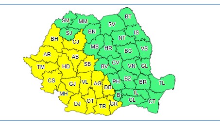 Notă: Fenomene specifice instabilității atmosferice vor fi pe arii restrânse și în restul teritoriului, potrivt ANM.