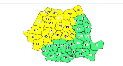 Atenționare meteorologică COD GALBEN