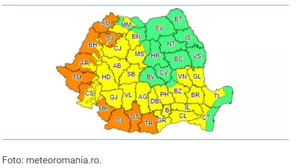 Pe parcursul zilelor de vineri și sâmbătă (22 și 23 iulie) în Banat, Crișana, sudul Olteniei, sud-vestul Munteniei, nord-vestul Transilvaniei și în vestul Maramureșului valul de căldură se va intensifica. În general după-amiaza se vor înregistra valori termice de 38...40 de grade, iar noaptea nu vor coborî sub 20...22 de grade și prin urmare disconfortul termic va fi accentuat. Indicele temperatură-umezeală (ITU) va depăși pragul critic de 80 de unități, potrivit ANM.