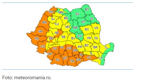 Joi, 28 iulie, vremea va fi călduroasă în cea mai mare parte a țării. În vestul și pe arii restrânse în centrul și sudul teritoriului va fi caniculă, iar temperaturile maxime vor fi cuprinse între 27 și 37 de grade Celsius. După-amiaza și seara vor fi condiții de ploaie, cu averse, tunete și descărcări electrice.