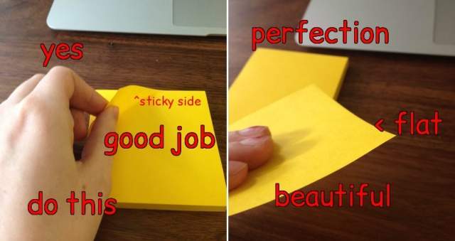 Ca mai toata lumea, probabil ca atunci cand dezlipesti un post-it, o faci de jos in sus. Dar, aceasta metoda este complet gresit. Blogger-ul Martin Schapendonk a impartasit tuturor o tehnica de dezlipire care face ca biletelul sa se lipeasca mai bine de orice suprafata.