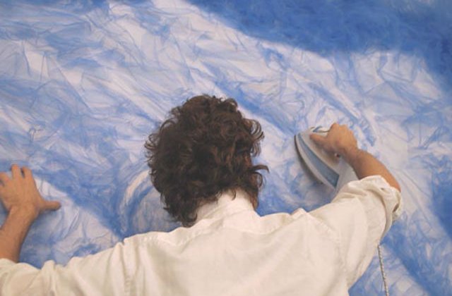 Shine sculpteaza, preseaza si calca in pliuri bucata de panza pentru ca la final sa dea nastere unor picturi inedite. In clipul de mai jos puteti urmari cum artistul transforma o bucata de material intr-o pictura, folosind doar un fier de calcat.