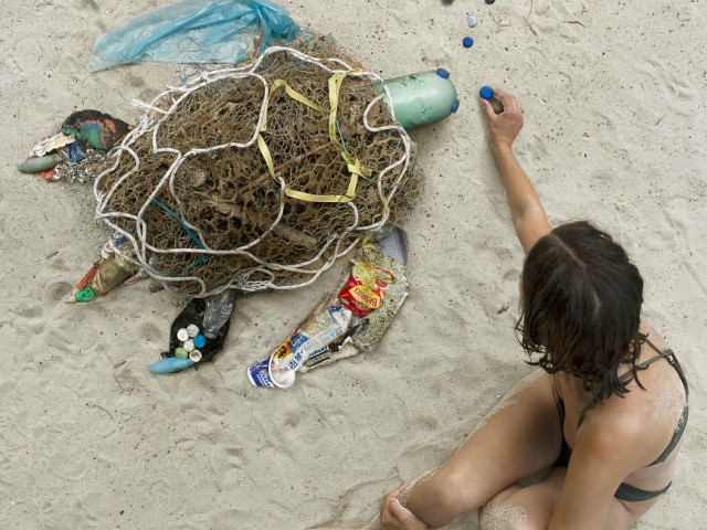 Prima sculptura facuta din gunoaie, cea cu broasca testoasa, a fost facuta dupa ce a participat la o misiune de curatare a unei portiuni de plaja din Malaezia. Cu ajutorul copiilor si a partenerului sau a decis sa reconstruiasca din particele de deseuri o specie de broasca testoasa amenintata cu disparitia.