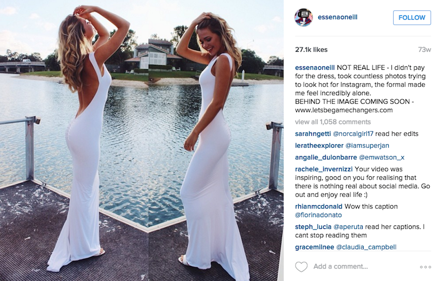 Essena O’Neill a sters peste 2.000 de fotografii de pe contul de Instagram si a renuntat complet la Tumblr si Snapchat. Scopul ei a fost de a arata lumii cat de falsa si patetica este realitatea din spatele fotografiilor pe care multi le admira tanjind.