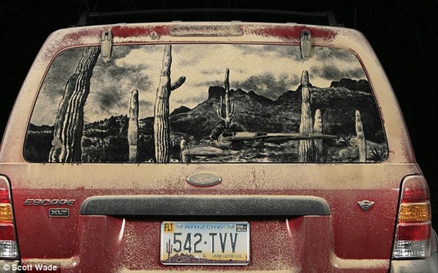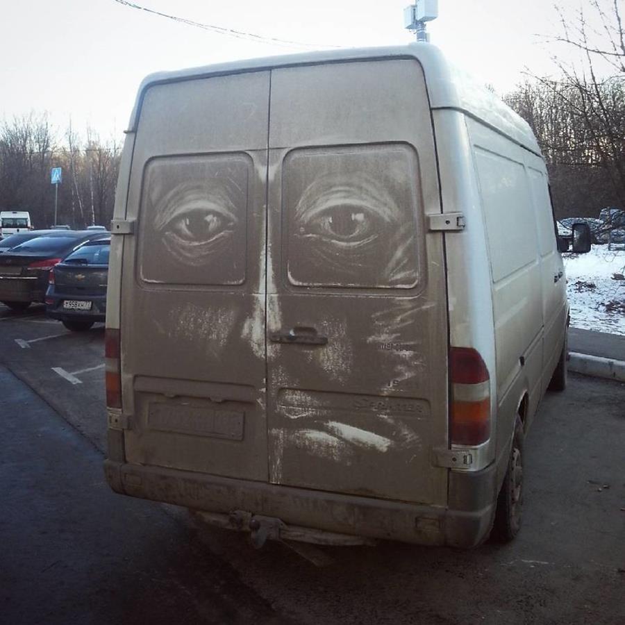 Artisti nevazuti! Opere de arta lasate pe masinile pline de praf