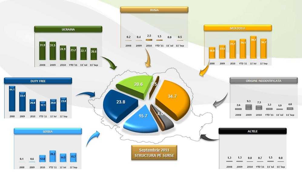 Un procent de 7% se duce la bugetul de stat din accizele anuale provenite din vanzarile de tutun. In 2010, cele trei companii prezente pe piata locala de tigarete au contribuit la bugetul general consolidat, cu circa 2,5 miliarde de euro, reprezentand accize, TVA si alte taxe si impozite. - "Anul trecut a fost acea actiune corecta in opinia mea, chiar daca din punct de vedere mediatic unii dintre noi am platit nemeritat si mult prea mult. Acea actiune de curatare a vamilor care probabil ca va continua, pentru ca nu cred ca prin arestarea a 20-30 de angajati ai vamii si a 100-150 de politisti de frontiera vamile romanesti s-au curatat de angajatii predispusi la fenomene de coruptie", a declarat Sorin Blejnar, aflat la un eveniment al pietei de tutun.