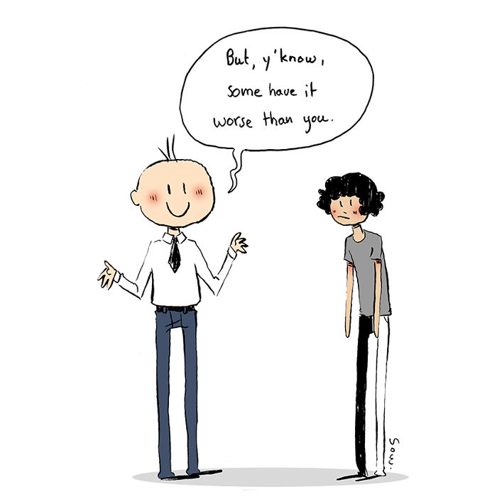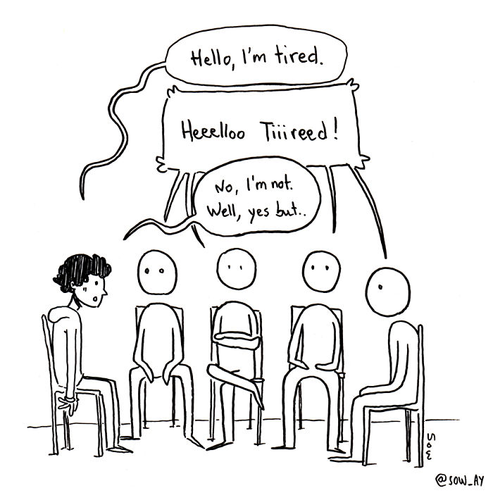 Depresia nu este o gluma. Aceasta "boala a secolului", asa cum este numita, afecteaza milioane de oameni si lasa urme adanci in sufletele lor, chiar daca multi nu isi pot descrie sentimentele si nu stiu ca au fost "atinsi" de ea. Un artist din Franta, cunoscut pe Instagram cu user-ul sow_ay, incearca sa redea exact ce simte cu ajutorul unor ilustratii care, trebuie sa recunoastem, spun mai mult decat 1000 de cuvinte. Iata cateva exemple, in galeria de mai jos (mai multe ilustratii, puteti vedea pe Instagram):
