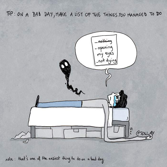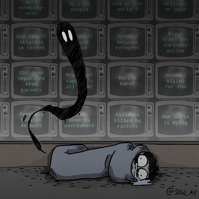 10+ ilustratii realiste care arata modul in care depresia si anxietatea ne afecteaza in viata de zi cu zi