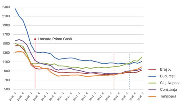 Evolutia pretului pe metru patrat 2008-2016