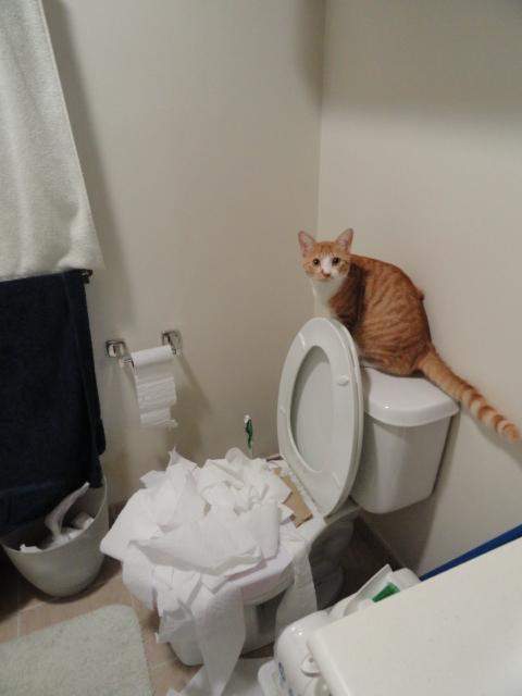 Încerca să își învețe pisica să folosească toaleta. Se pare că elevul a depășit profesorul