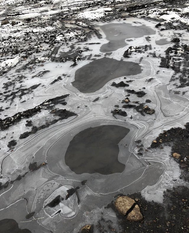 Gheața arată ca niște lacuri înghețate văzute de la înălțime