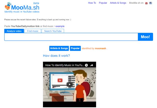 Cu totii am avut momente in care am urmarit un clip si piesa de pe fundal ne placea, dar nu stiam cum se numeste sau cine o canta. Multi dintre voi vor zice... ok, exista Shazam... Justa si aceasta afirmatie, dar site-ul www.mooma.sh iti recunoaste toate piesele de pe fundalul unui clip de Youtube.