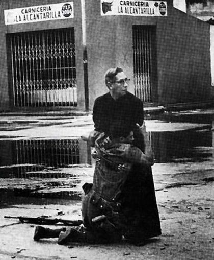 Un soldat impuscat de un lunetist, agatat de un preot in ultimele sale clipe