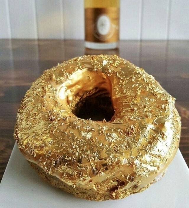 O fasie de bacon acoperita cu ciocolata neagra si praf de aur de 23K - 40$