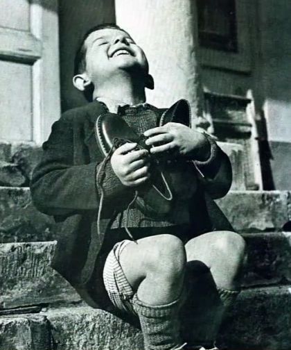 Un orfan in varsta de 6 ani din Austria care primeste prima sa pereche de pantofi