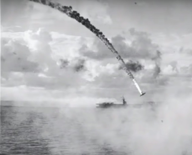 Un avion japonez este doborat in timpul bataliei de la Saipan in 1944