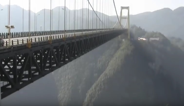 Sidu River Bridge strabate muntii din bazinul Sichuan, peste valea raului Sidu. Constructia are 1,2 kilometri lungime, fiind suspendata la 496 de metri deasupra prapastiei. Sidu River Bridge a fost deschis traficului pe 15 noiembrie 2009.