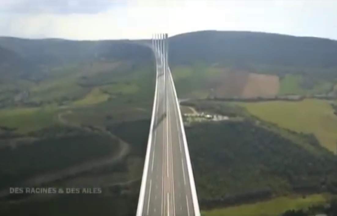 Viaductul Millau trece peste valea raului Tarn, din Franta. Este un pod pe cabluri, cu o lungime de 2460 de metri si o inaltime de 271 metri. Piatra de temelie a fost pusa pe 16 decembrie 2001, fiind deschis circulatiei pe 16 decembrie 2004.
