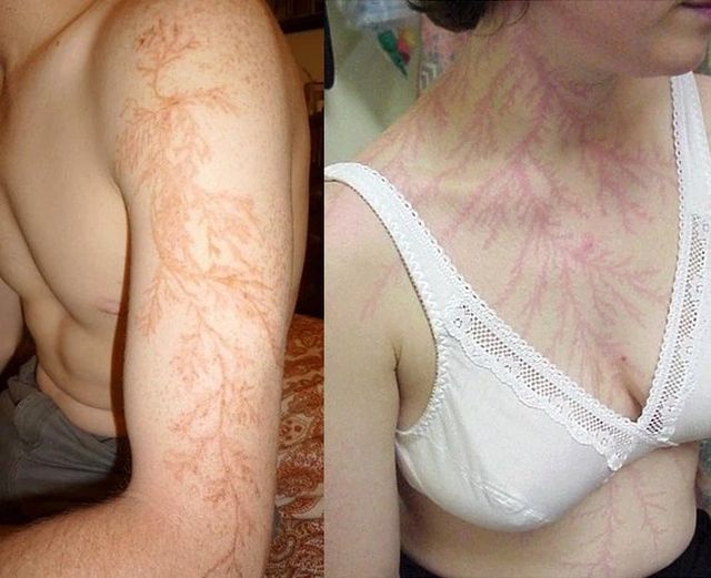 Descarcarea electrica de mare intensitate care se produce in corpul tau in momentul in care esti lovit de un fulger, poate lasa urme semi-permanente pe pielea ta. Acestea se aseamana cu ramurile unor copaci si sunt numite figuri Lichtenberg.