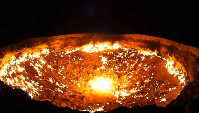 Craterul Darvaza din Turkmenistan masoara 60 de metri in diametru si are o adancime de aproximativ 20 de metri. S-a creat in 1971 dupa ce o explozie accidentala s-a produs la o sonda ruseasca de gaze. De atunci arde continuu si este poreclita "Poarta Iadului". Acest lucru se datoreaza si mirosului puternic de sulf care este degajat de arderile din acel loc.