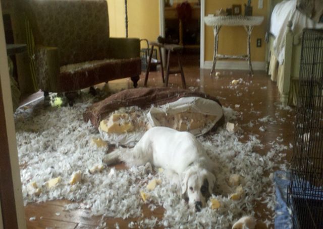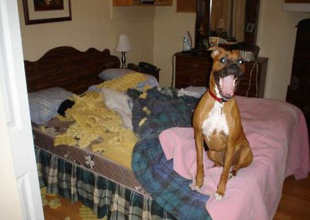 Stapanii de catei stiu ca nu e bine sa-ti lasi animalul singur in casa, pentru ca aceasta poate deveni cu usurinta un loc gigantic de joaca. Va prezentam mai jos 11 exemple de catei jucausi prinsi in fapt de stapanii lor. Expresiile animalelor sunt de nepretuit. Fotografii oferite de 7jokes.com.