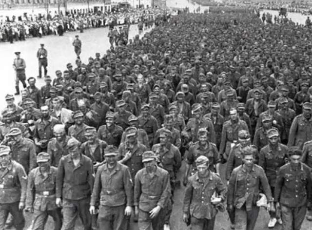 Prizonieri germani marsaluind la Moscova, dupa infrangerea lor in Belarus (1944)