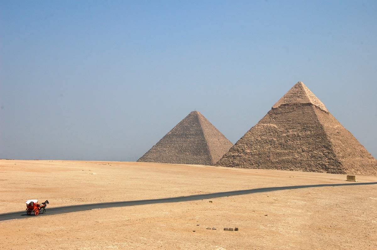 Drumul spre Giza, spatiul care gazduieste celebrele piramide egiptene, este cel mai vechi drum pietruit din lume. Drumul are peste 4.600 de ani vechime, aproape 2 metri latime si 12 kilometri lungime. Drumul era folosit pentru transportul blocurilor enorme de bazalt folosite in constructii.