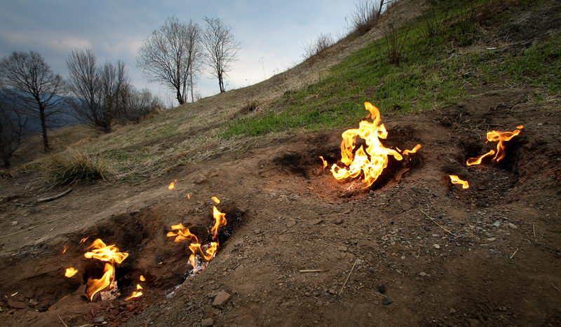 Focul Viu este localizat in judetul Buzau, pe Valea Slanicului, intr-un deal din apropierea satului Terca, comuna Lopatari. Si reprezinta, de fapt, un fenomen firesc, ce are la baza emanatiile de gaze naturale din scoarta terestra, care, sub actiunea razelor solare, se transforma intr-un foc cu trimiteri infernale. Flacarile sale pot ajunge la jumatate de metru si chiar un metru inaltime. Considerat monument natural, este inscris in baza de date a ariilor protejate din lume.