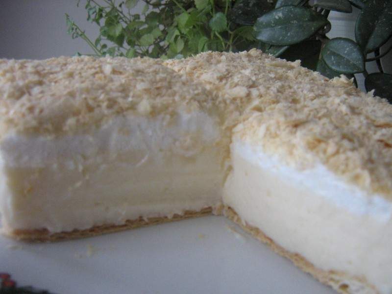 Ai nevoie de 1 pachet de margarina, 300 g zahar, 1 l lapte, 8 oua, 10 linguri faina si o esenta de vanilie. Topesti margagina cu 4 linguri de lapte si tot zaharul. Lasi la racit si apoi adaugi 8 galbenusuri, laptele, vanilia si toata faina. Bati albusurile spuma si le adaugi in compozitia de mai inainte. Amesteci numai intr-un sens, de sus in jos. Apoi torni amestectul intr-o tava cu hartie de copt si o lasi in cuptor cam 40 de minute
