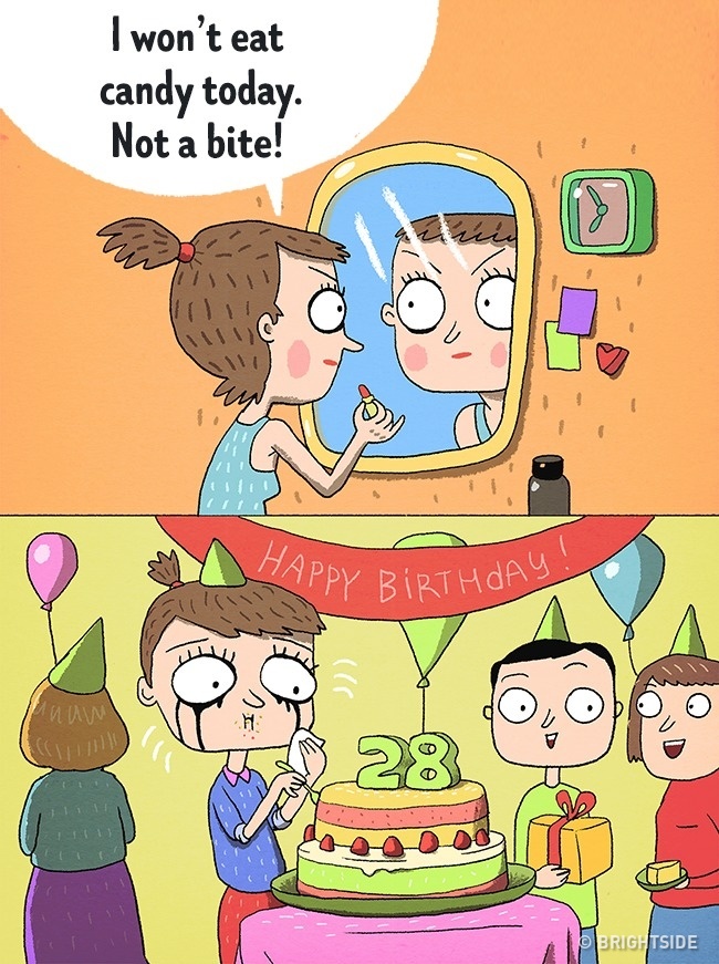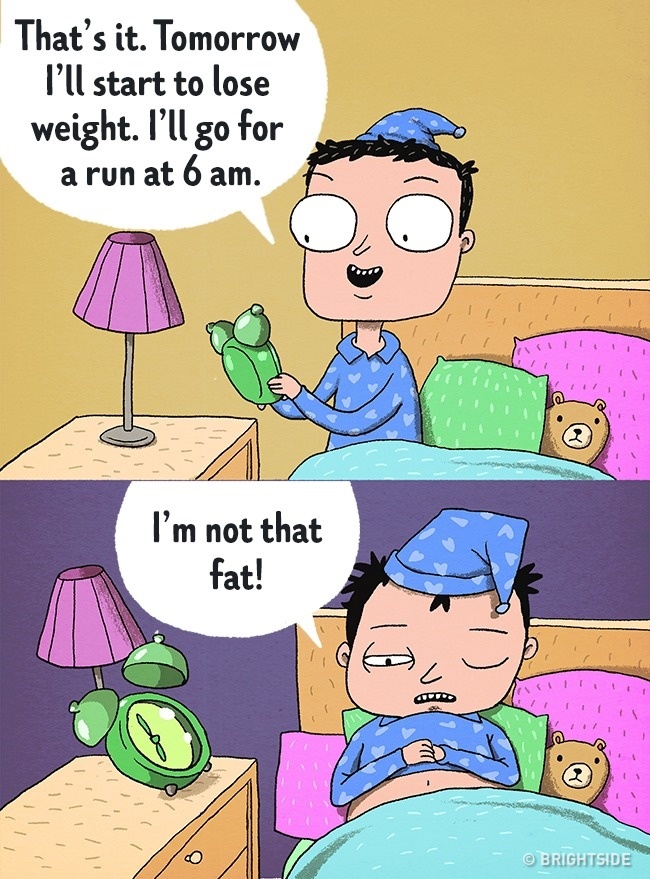 Ai cateva kilograme (sau mai multe) in plus si te chinui de ani buni sa slabesti? Atunci te vei regasi, cu siguranta, in ilustratiile de mai jos, publicate de site-ul brightside.me.