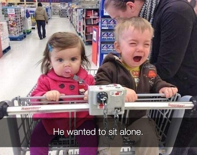 Voia sa fie singur in caruciorul de cumparaturi