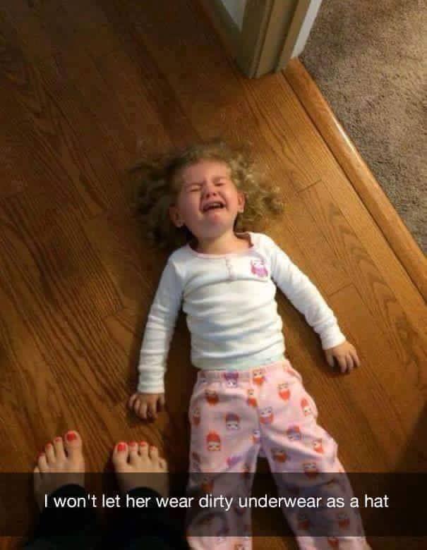 Fetita suparata pentru ca mama ei nu a lasat-o sa isi puna in cap lenjerie intima murdara