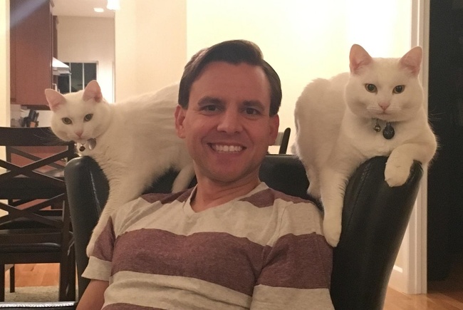 De fiecare data cand ajunge acasa, acest tanar este "urmarit" de pisicile lui