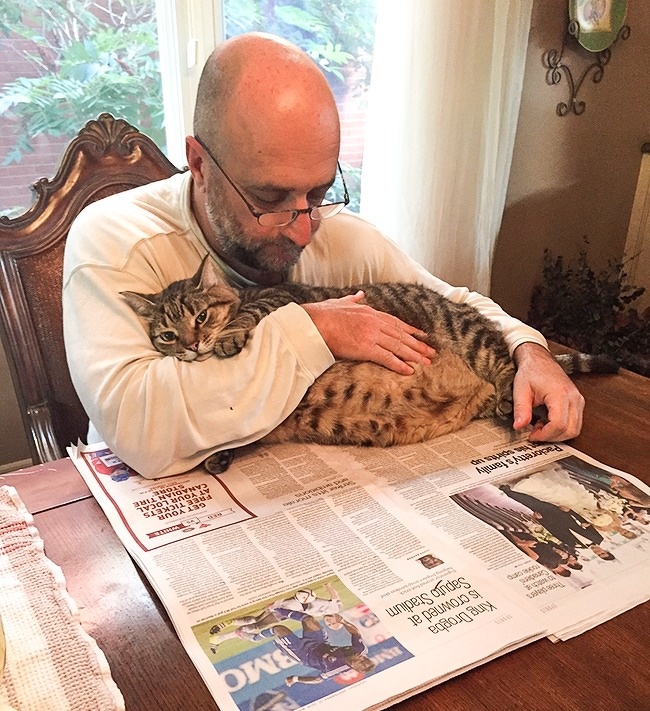 Dupa o luna in care stapanul ei a fost plecat, aceasta pisica nu se mai desparte nicio clipa de el