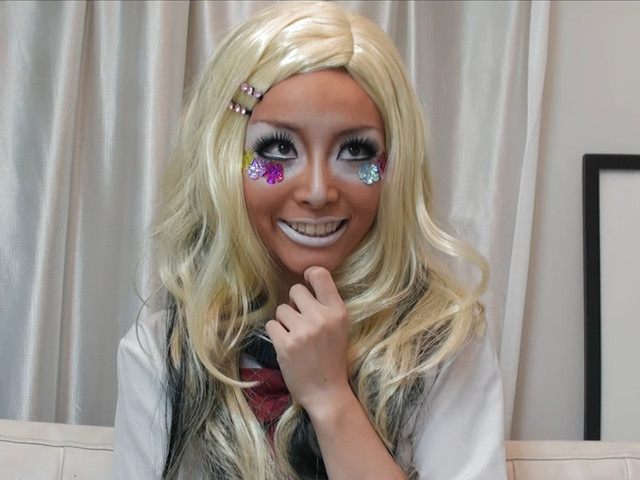Aspectul ciudat este completat de gene false colorate, pietricele lipite pe fata si de o vestimentatie colorata.