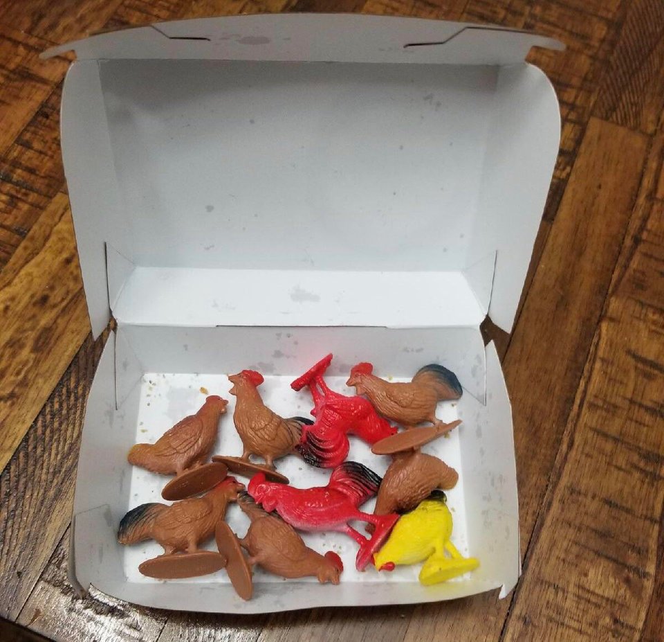 Dupa ce si-a mancat bucatile de pui, un copil le-a inlocuit cu jucarii