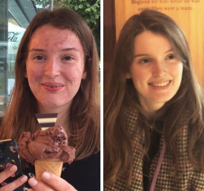 2015 vs 2017 - Fata este fericita ca in sfarsit a scapat de acnee