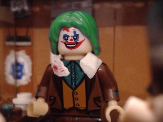 Intentionat, machiajul de clovn pentru Joker este facut sa para invechit, iar buzele sale sunt intr-un rosu care sa semene cu sangele. S-a mentionat ca "zambetul sau este de fapt o metafora a faptului ca nimic nu este perfect."