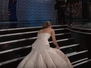 Jennifer Lawrence este cunoscuta pentru rolurile din The Hunger Games, Red Sparrow sau seria X-Men. In 2013 castiga un premiu Oscar pentru performanta din Silver Linings Playbook. In drumul spre scena pentru a-si accepta premiul se impiedica in fata invitatilor si a celor care urmareau show-ul.