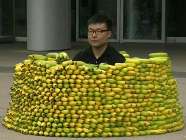 Oamenii invitati sa ia cate o banana, pentru "a darama" bariera rasiala. Cati se vor incumeta?