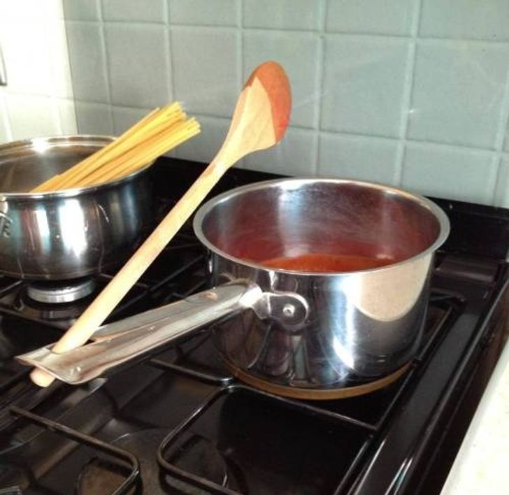 Nu, aceste găuri nu sunt acolo doar pentru design, ci pentru a îți permite să pui lingurile lângă oală fără să murdărești totul în jur