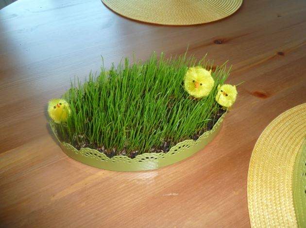 Nu e o gluma. Chiar fac acest lucru. In momentul in care iarba a ajuns o maturitate adecvata copii pun tot felul de decoratiuni in vasele cu iarba sau in curte si oua pictate pentru a semnala timpul fertilitatii in toata tara.