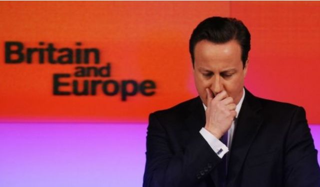 Dupa ani in care a respins apelurile parlamentarilor conservatori privind convocarea unui referendum in legatura cu apartenenta Marii Britanii la UE, Cameron a anuntat, cu fast, intr-un discurs pentru Bloomberg din ianuarie 2014, ca va organiza o astfel de consultare populara, daca va castiga alegerile urmatoare. A fost cel mai riscant pariu din cariera sa politica, facut pe fondul unei ascensiuni a rebelilor eurosceptici in Partidul Conservator. Decizia i-a permis sa castige alegerile din 2015, dar a adus si finalul carierei sale politice.