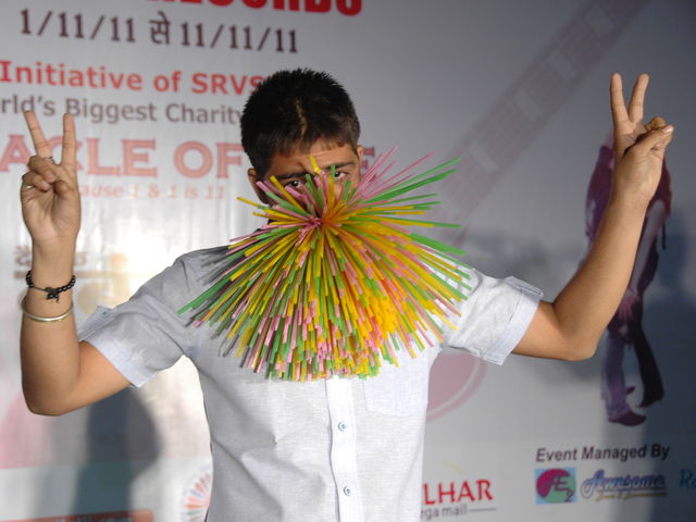 Dragon Jetlee (da, asa il cheama), un barbat din Tiruchiappalli detine recordul pentru ca a spart cele mai multe oua cu barba, intr-un minut: 150.